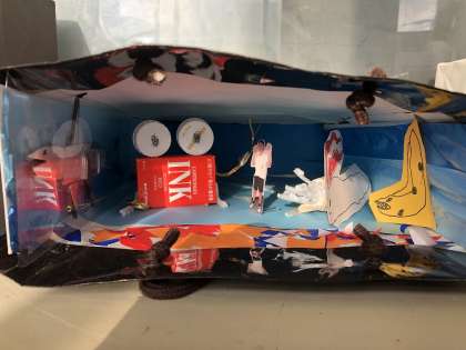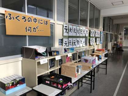 廊下に並んだ”ふくろ”の中には、夢いっぱいの小さな別世界が広がっています。ひとつひとつに工夫があり、味があります。しっかんりご参観ください。