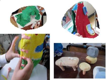 イメージした形になるように、色付けをしたり、紙粘土や飾りをつけたりしています。