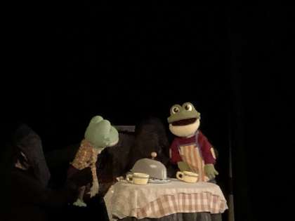 今日(11/4)は、人形劇鑑賞の日。劇の題名は「火曜日のごちそうはヒキガエル」です。