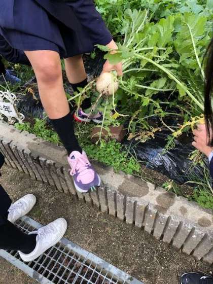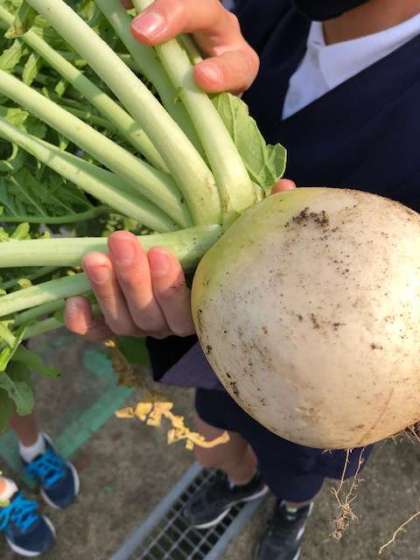 本日(11月16日)3時間目に大根を収穫しました。