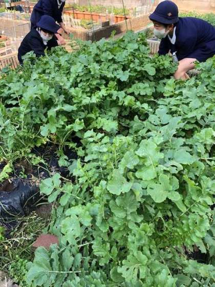 大きい大根や小さい大根など、大きさはさまざまでしたが、子どもたちは大根を抜いたり洗ったりして、手際よく、取り分けていました。収穫後は、一人ずつ順番に選んで袋に入れ、持ち帰りました。