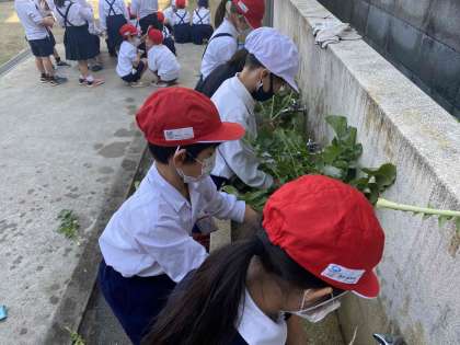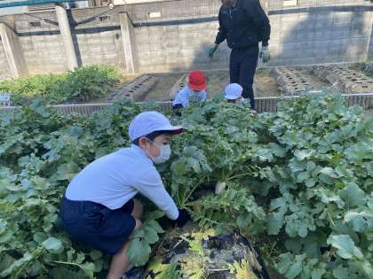 大根を抜くのが初めての子ばかりで、なかなか抜けないと悪戦苦闘‼でも、無事収穫し、冷たい水でしっかり洗って、昨日持ち帰りました。