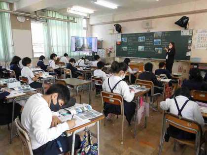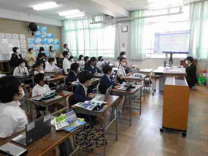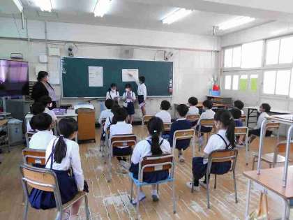 次は、4-1、5-1、5-2です。4年生は、総合的な学習で、中国・四国地方のことをグループで調べたことを発表しました。5年生は、社会科で日本の地形を画像を見ながら、特徴をとらえる学習をしました。