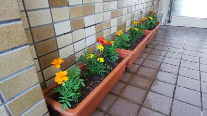 玄関のお花が5月18日に管理作業員さんにより、ビオラからマリーゴールドにバトンタッチしました。来校の際には、ぜひチェックしてください。