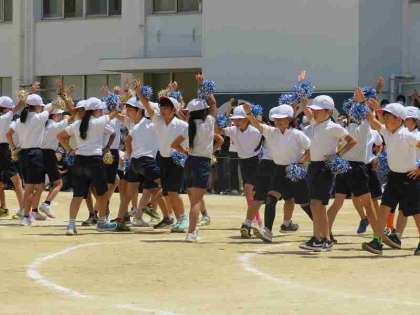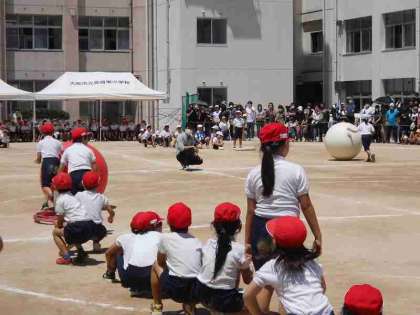 3年生は、「走れ!かがやけ!全力で!」「ころがせ!かがやく元気玉!」そして、3・4年生の団体演技「FLASH〜80の輝き〜」です。
