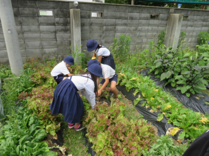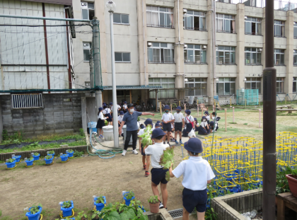 3年生が育てている野菜が大きくなったので収穫祭を行いました!
