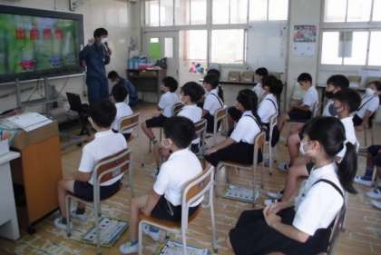 2コマ目は、教室で大阪市のゴミの量の変化や、焼却工場の様子を学びました。分別クイズもしていただいて、楽しく学ぶことができました。
