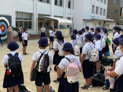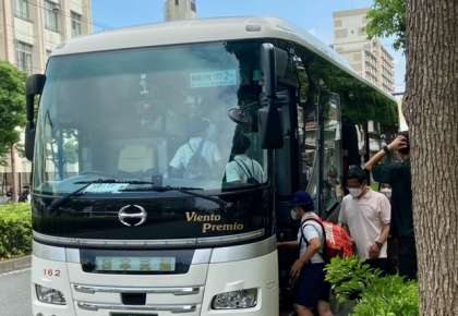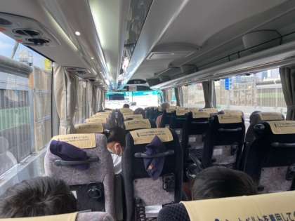 みんな楽しい思い出を刻めるように、また、友との友情の絆を深めるようにと元気一杯集合しました。出発式を行い、バスに乗り込みました。