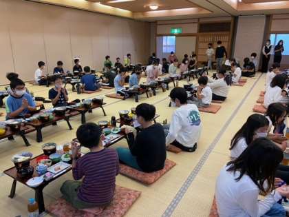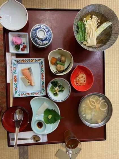 その後、朝食です。丸コンロを使って固形燃料で温かくて美味しい味噌汁がいただけました。