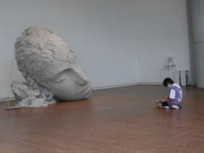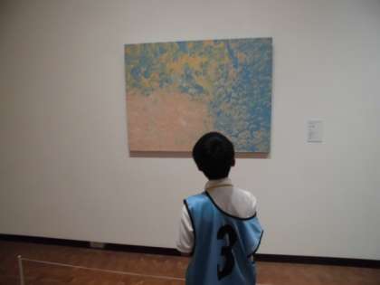 最初は、グループで鑑賞していた子どもたちですが、作品の世界にだんだん引き込まれていきます。10分もすると、自然と個人での鑑賞になっていきました。近くで見たり、離れてみたり、立体作品は後ろから鑑賞してみたりと、作品と対話していました。1時間程度と短い時間ではありましたが、子どもたちの色や形、イメージの深まり、広がりが感じられた時間でした。