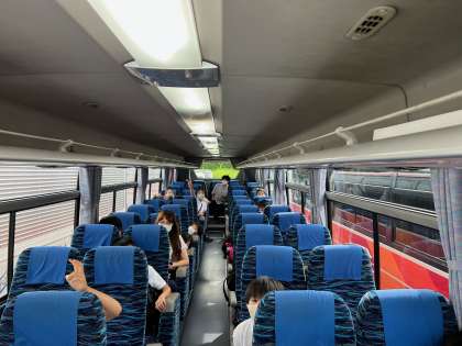 バスでは、音楽を聞きながら楽しく過ごしています。