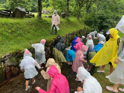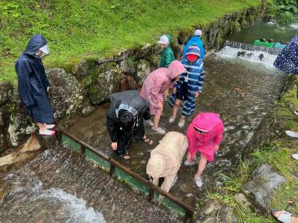 水がとても冷たいですが、子どもたちはカッパを着ておおはしゃぎです。