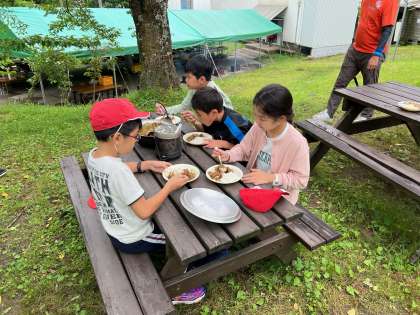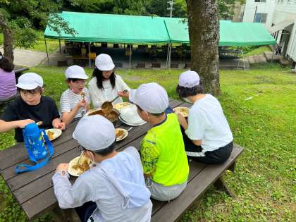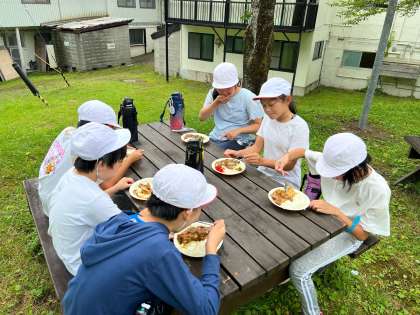 途中、向かってくる煙による目や喉の辛さと戦いながら、班で協力して作りました。