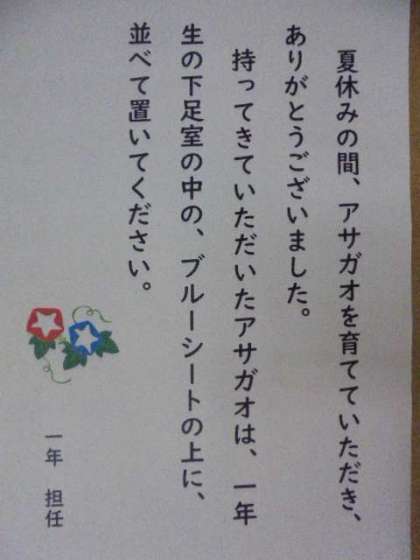 夏休みの間、大切に育てていただき、ありがとうございました。