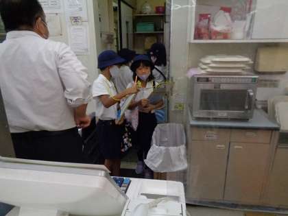 3年生の社会科の「店ではたらく人びとの仕事」の学習のため、コンビニエンスストア(デイリーヤマザキ)にて、本日社会見学をさせていただきました。