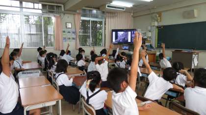 今回は、Teamsを使って、各教室とオンライン型で学習をしました。