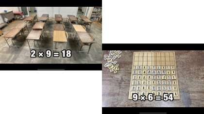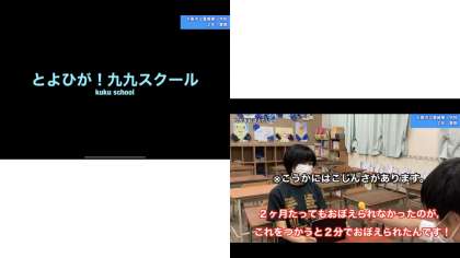 2年生算数科では,「かけ算」の学習がスタートしています。まだまだ「1つ分の数」×「いくつ分」という、かけ算の意味理解の段階で,3×5の答えを3+3+3+3+3と足し算で考えていますが,素早く答えを求めるために,かけ算の答えを九九で覚えていきます。そこで,2年生では本校で作成したオリジナル学習動画「とよひが九九スクール」を観ながら九九を学んでいます。