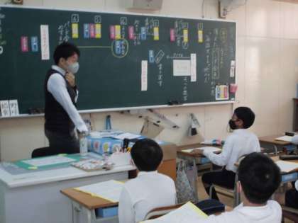10月31日の6時間目、4年1組の教室にスーパー先生(大阪市立堀川小学校 流田賢一先生)にお越しいただき、国語の授業をしていただきました。