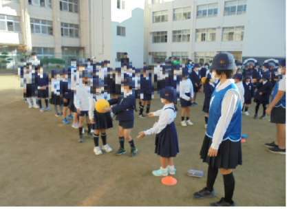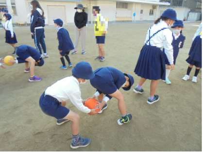 たてわり班で、前から後ろまでボールを回しました。