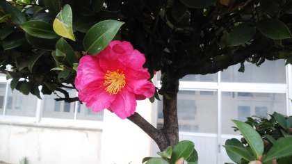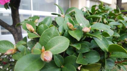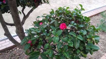 12月12日(月) めっきり寒くなりましたが、この寒い中、校庭の花壇に今年も山茶花の花が咲き始めました。つぼみもたくさんついています。これからが楽しみです。