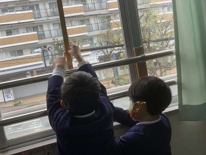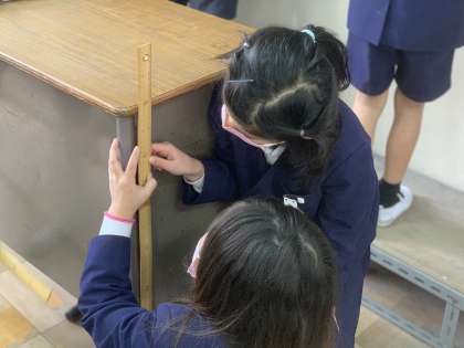 黒板、テレビ、窓、ロッカーなど、子どもたちは、いろいろなものを測っていました。