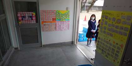 2つ目は、全学級が調理員さんに感謝のメッセージを書きました。給食委員会が代表し、調理員さんに渡しました。