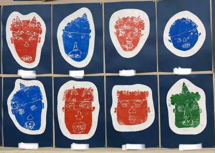 図工で作っていた鬼の紙版画が刷り終わりました。