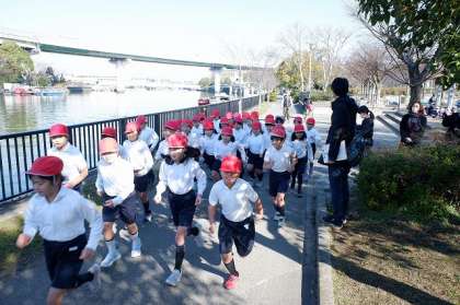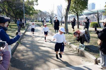 スタートの児童遊技場から1・2年生は飛翔橋、3・4年生は都島橋、5・6年生はJR環状線高架下を折り返し、それぞれ1,000m、1,500m、2,000mを走りました。保護者の方に見守られて、普段とは違うコースを走り、緊張した中にも新記録を出そうと意欲溢れる姿を見せてくれました。一生懸命最後まで走り切った顔が光った1日でした。