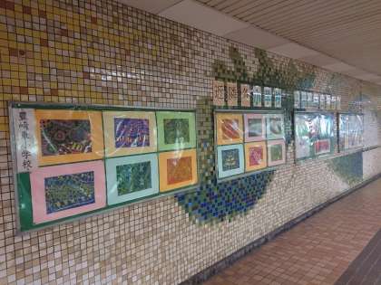 天神橋筋六丁目駅構内の掲示が、豊崎東小の1年生と5年生の掲示にかわりました。