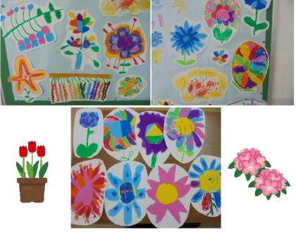 図工科の「こころの 花を さかせよう」で、たくさんの花を咲かせました。