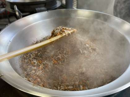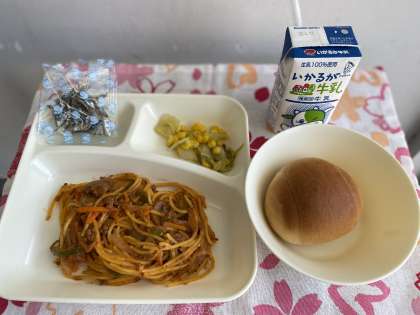 ミートソースのルウは小麦粉からいちから手作りで作っています。褐色に色付けることによってとてもコクがでて美味しく仕上がります。子供たちに大好評のメニューです。