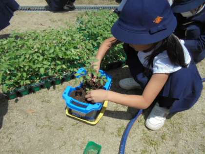 たくさん水をあげて、大きく立派なトマトになってほしいです。