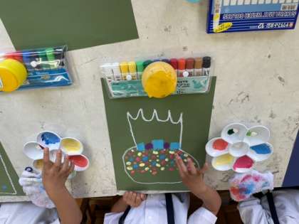 絵具にはでんぷんのりを混ぜてあり、立体感がありマーブル模様が素敵なドロップたちでした♫
