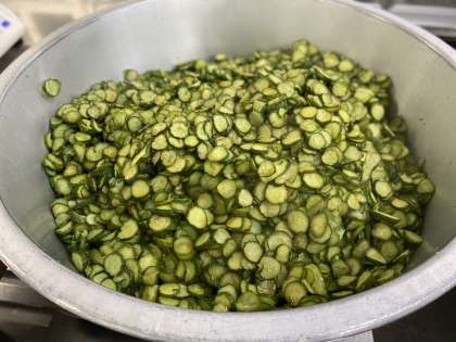 「きゅうりのしょうがづけ」は、きゅうりをゆでて、熱いうちにしょうが汁、砂糖、うすくちしょうゆで作った調味液につけ、十分味を含ませます。