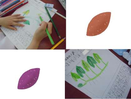 「なんか、はっぱが、ハートの形だ。」