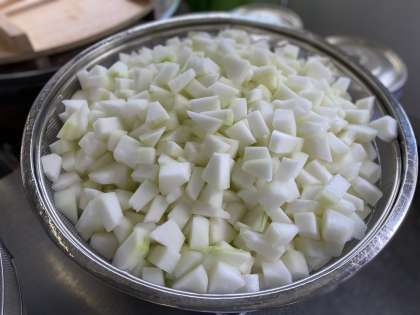 今日の給食では、とうがんを味わうためにシンプルな味つけにして、しょうがの風味をきかせただしで煮ました。今日も美味しく頂きました。