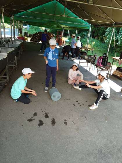コロコロ転がしながら、シャーベットの出来上がりを楽しみに頑張ります。