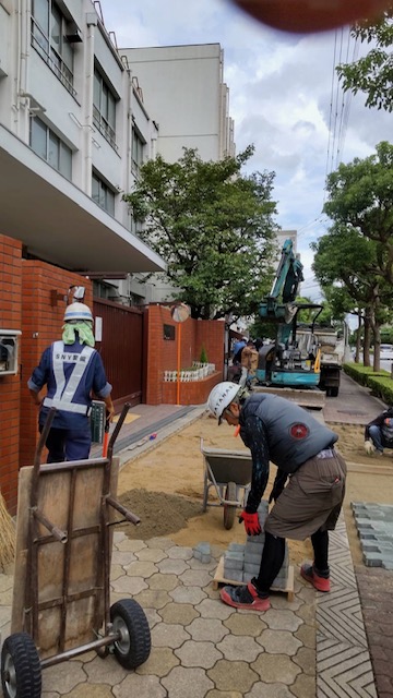 子どもたちの安心・安全な教育活動の一環として、本校の正門前の工事を行いました。