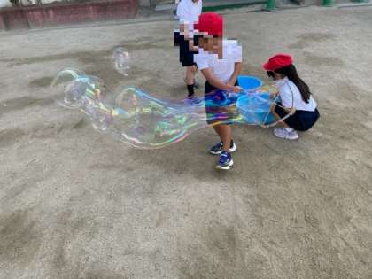 大きなシャボン玉や小さなシャボン玉が校庭いっぱいに広がっていました!