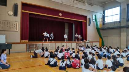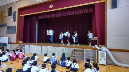 今日の児童集会では、フラッシュダッシュカードゲームを行いました。