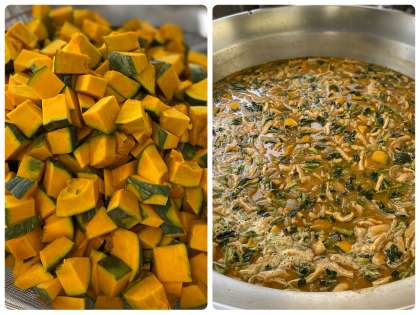 今日のみそ汁には、生のかぼちゃを使用しています。