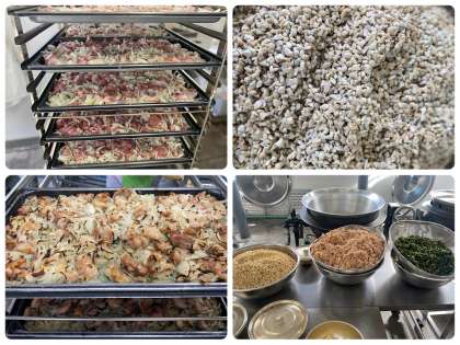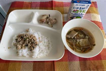 「ツナ大豆そぼろ」は、ツナ、ひきわり大豆、青みにだいこん葉を入れていため、砂糖、しょうゆなどで味つけした、ごはんによく合う一品です。