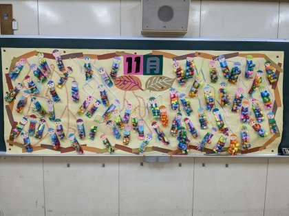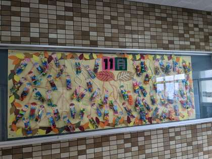 季節に合わせて、玄関にはミノムシの掲示物をはりました。