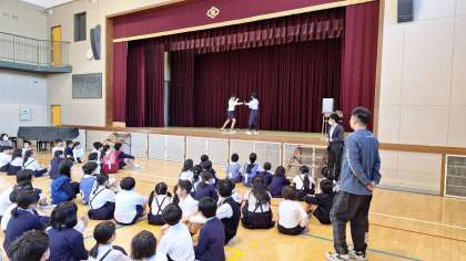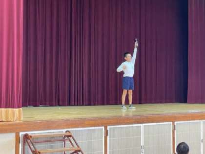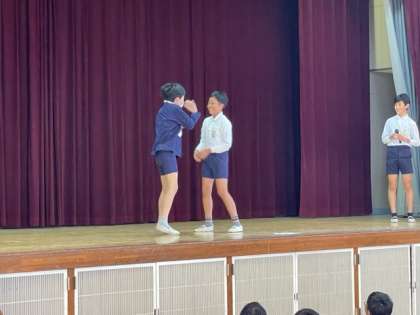 集会委員会のジェスチャーに、子どもたちは大興奮でした。