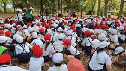 午前中は、全校児童が縦割り班で、オリエンテーリングを楽しみます。