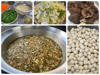 「中華丼」は、豚肉、うずら卵を主材に、はくさい、たまねぎ、たけのこ、にんじん、しいたけ、青みににらを使用しています。この献立は、【うずら卵】の個別対応献立です。