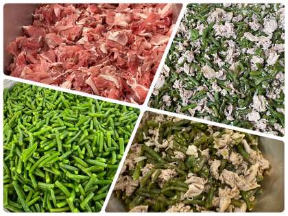 「千種焼き」とは、卵に細かくきざんだ具材をまぜあわせて焼いた料理です。今日の給食の千種焼きは卵の中に、鶏肉、とうふ、コーン、みつばが入っています。