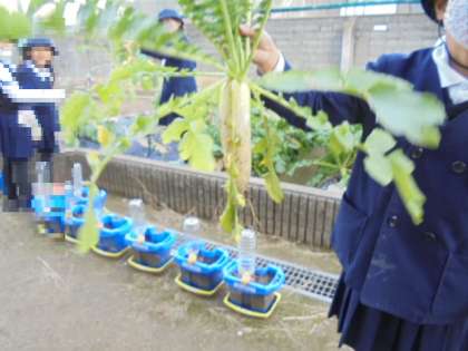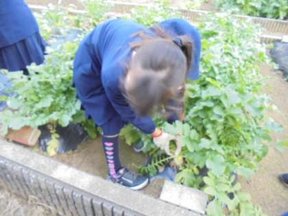 2年生 ダイコンの収穫 12月
