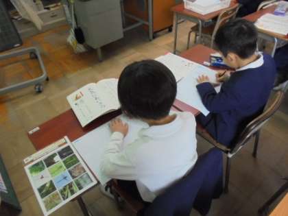 姿勢よく、正しい鉛筆の持ち方を意識し、ゆっくりと書くことができました。