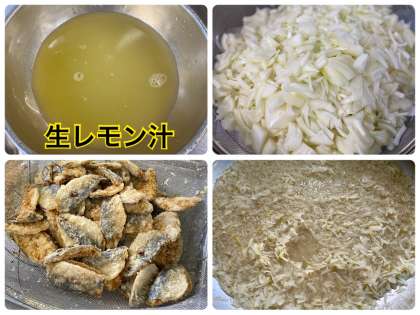 「あじのレモンマリネ」はあじをなたね油であげ、いためた玉ねぎと生のレモンを絞った果汁などで作った調味液をからませます。
